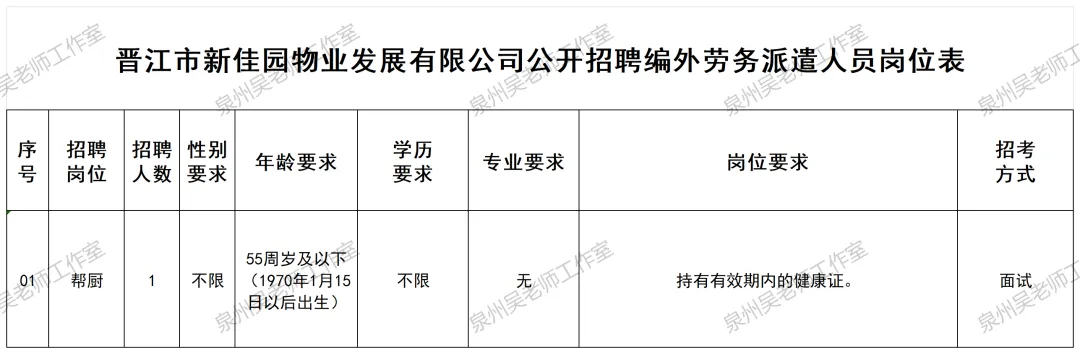 上述岗位具体要求请参见《福建石狮国有投资发展集团有限责任公司公开招聘计划表》(附件1)。