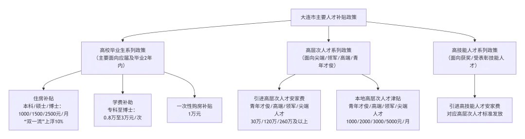 这类政策主要面向全日制本科及以上学历、毕业2年内且已取得大连户籍、在大连新就业或自主创业的应届毕业生。