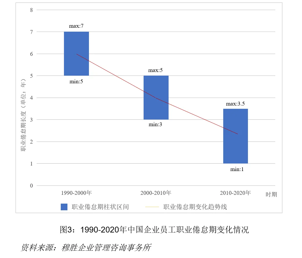图3:1990-2020年中国企业员工职业倦怠期变化情况