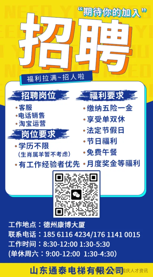 以上岗位,上班时间均为上午8:00-12:00,下午1:00-6:00