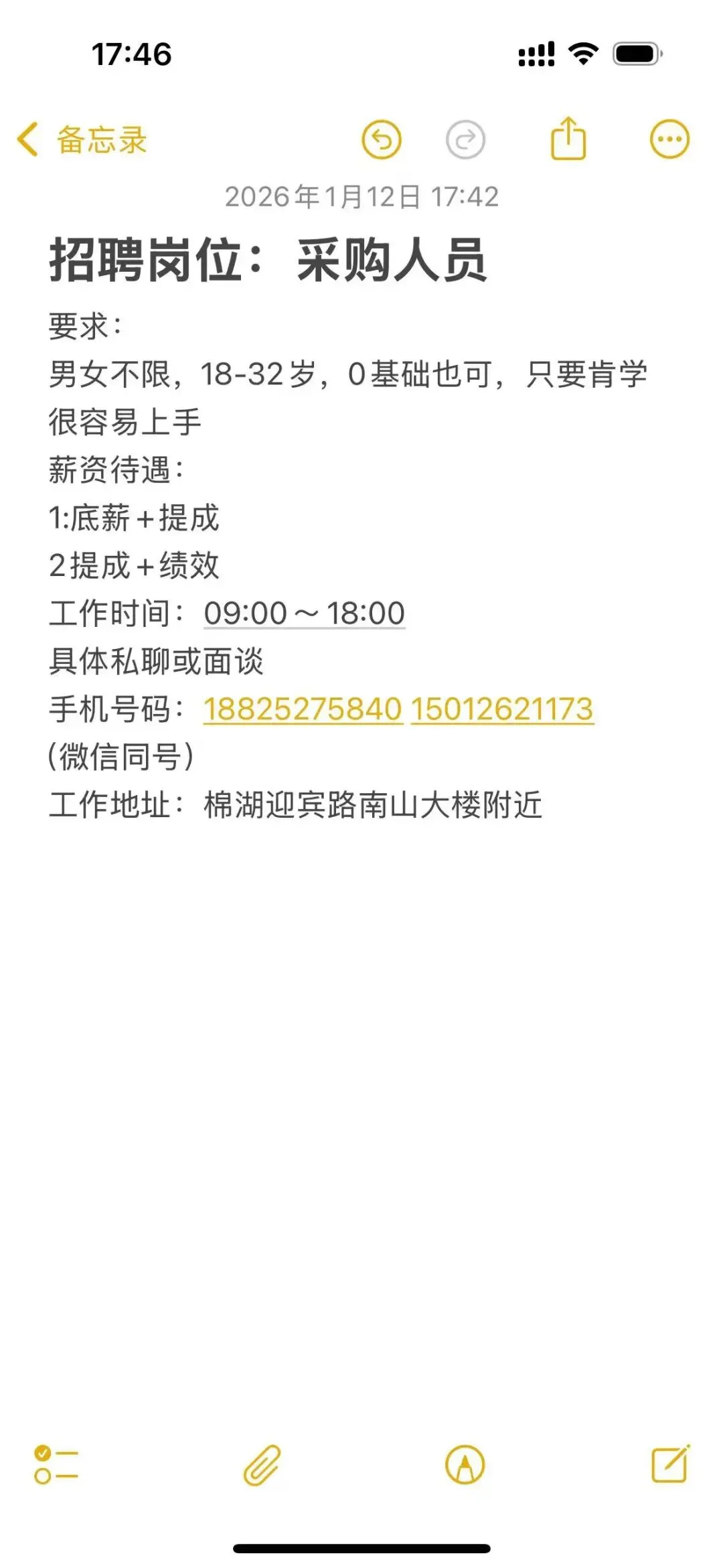 (小线)招工