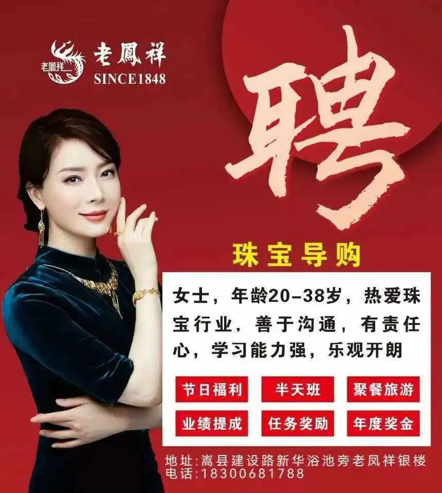 📍工作地点:嵩县建设路新华浴池旁老凤祥银楼