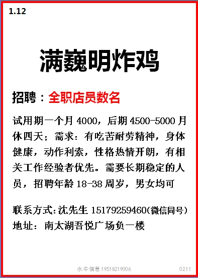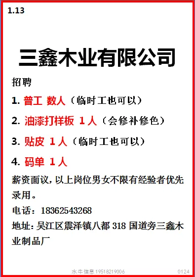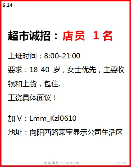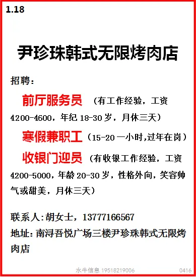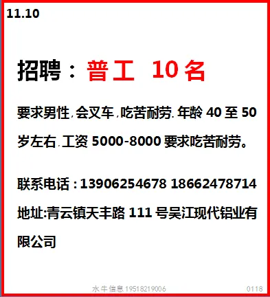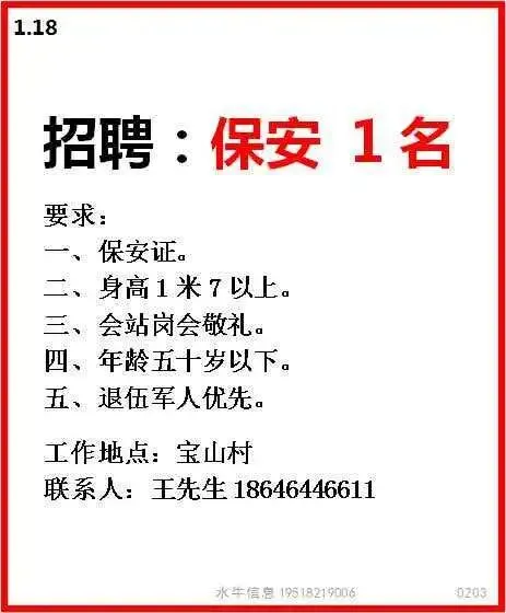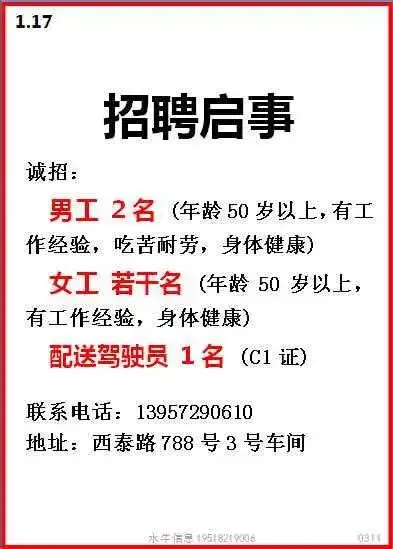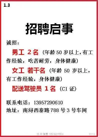 要求:男女不限,18-50周岁,身体健康,初中以上学历,夫妻优先