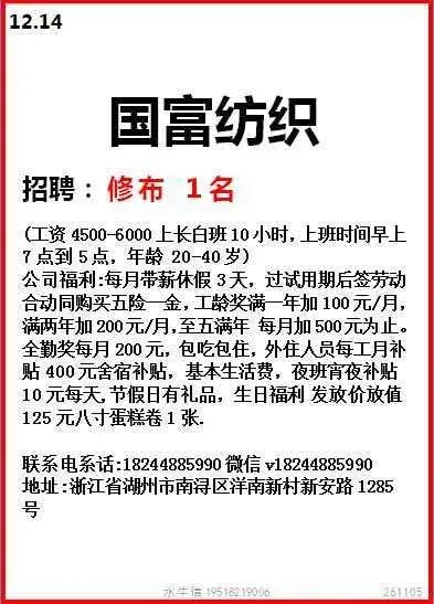 薪资:5500-7000元以上,计件多劳多得