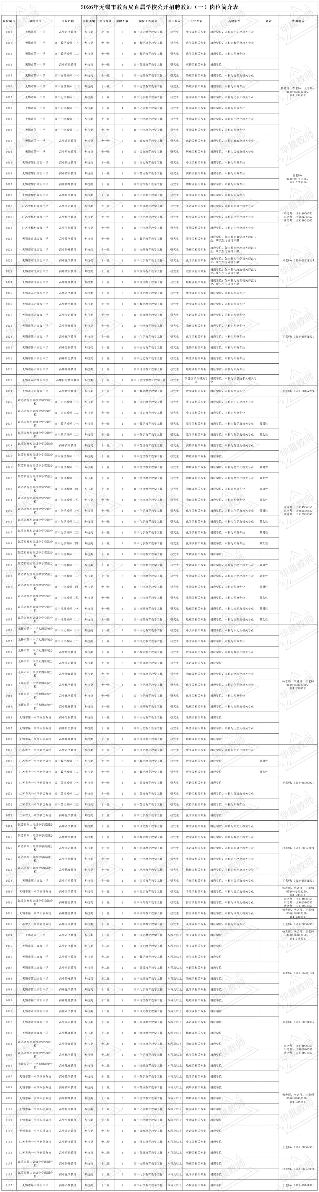 招聘工作坚持“公开、平等、竞争、择优”的原则,严格程序和标准,主动接受纪检监察机关和社会监督。无锡市教育局咨询电话:0510-81821830、0510-81827693;监督电话:0510-81827401;(仅限工作日9:00—17:00)。联系邮箱:wxjszg92@163.com。