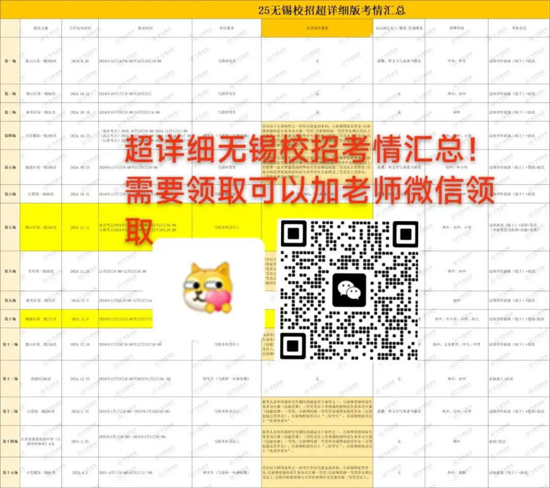 (3)面试。以考察拟任岗位所需的专业技术能力和综合素质为主。面试时间、地点等事项在无锡市教育局官网另行公告。