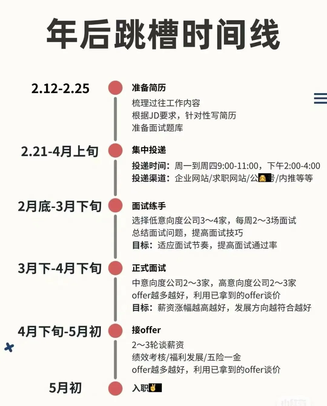 如果说从公历元旦到农历新年的时间段就像球赛里的【垃圾时间】,让人提不起兴致做任何正事儿,那么,现在垃圾时间总算是结束了。“过完年再说”不再是缓冲带或者挡箭牌了,该整的正事儿大事儿差不多也该提上日程了。就比如——跳槽。
