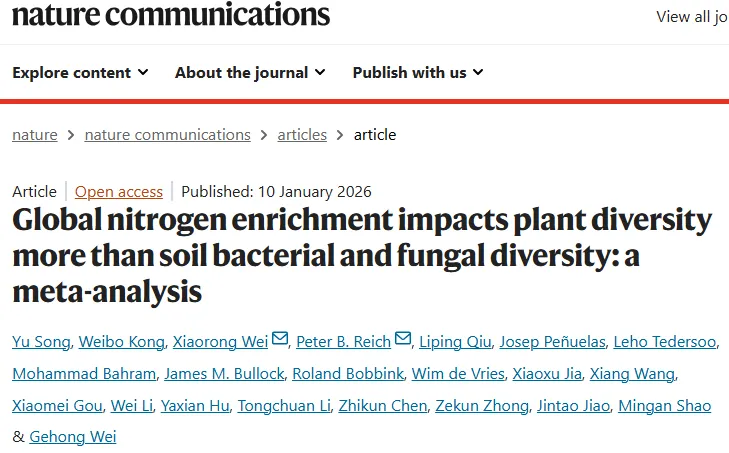 西北农林科技大学副院长入选国家级领军人才、在Nature Communications发表研究成果,氮富集重创植物多样性,土壤微生物却“毫发未损”