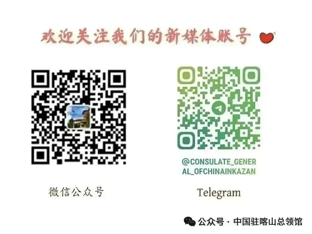 点击上方蓝字“中国驻喀山总领馆”即可订阅