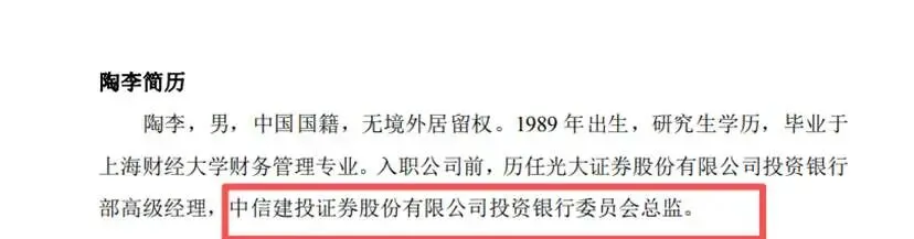 入职公司前,陶李历任光大证券股份有限公司投资银行部高级经理,中信建投证券股份有限公司投资银行委员会总监。