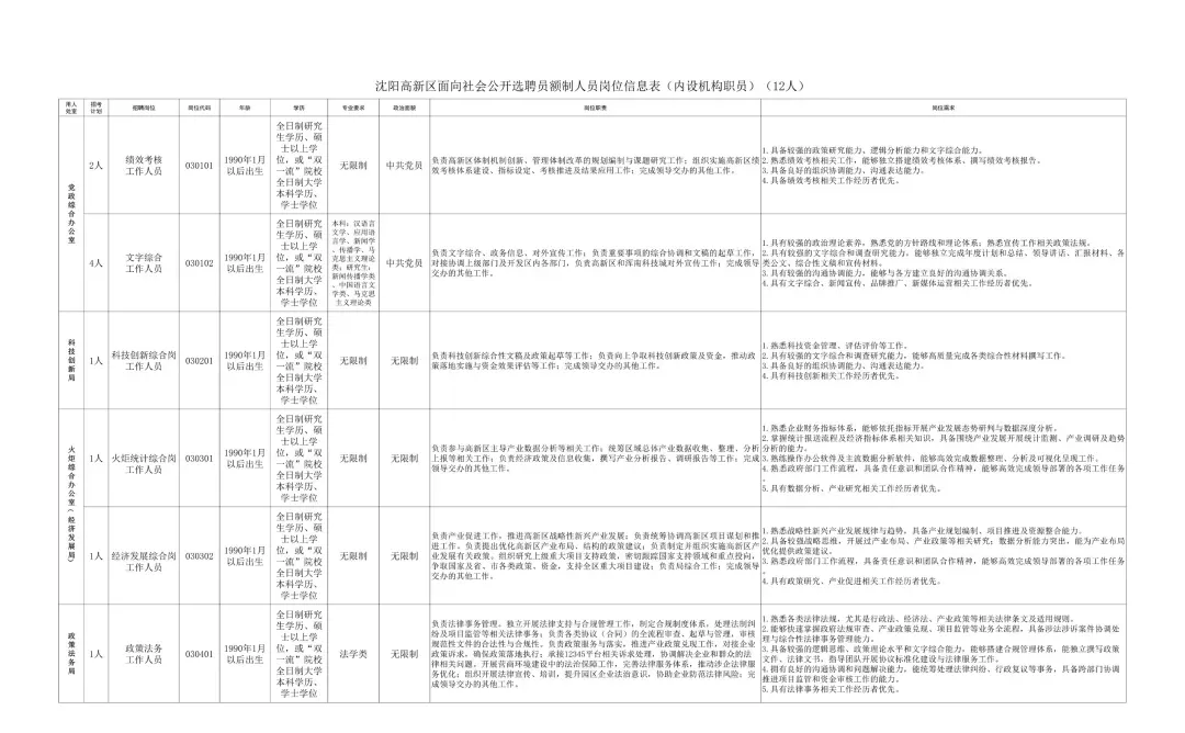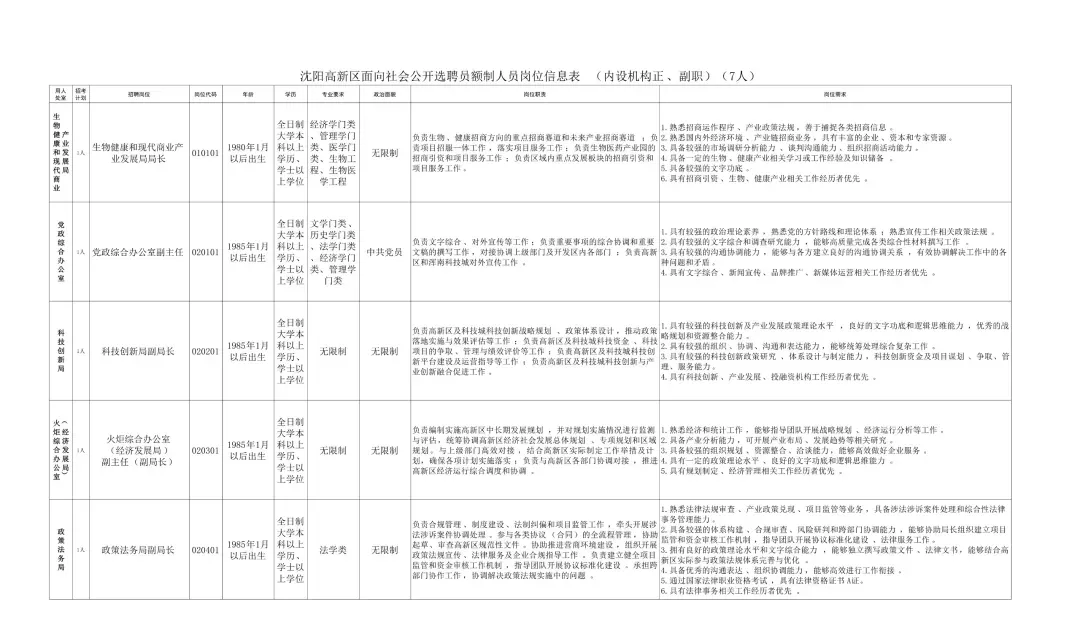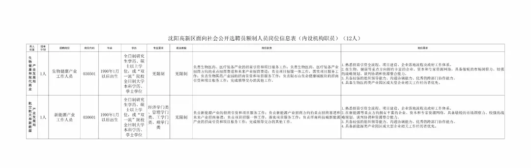 1月19日,沈阳高新技术产业开发区与中国(辽宁)自贸区沈阳片区联合召开新闻发布会,面向社会公开选聘41名专业人才,包括管委会内设机构正职岗位5个、副职岗位9个、工作人员岗位27个。报名时间从1月19日开始,持续到1月23日。