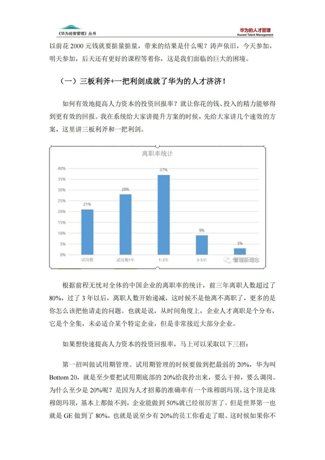 华为在选才方面有着独特的“三板斧+一把利剑”机制。第一板斧是试用期管理,通过严格的试用期考核,淘汰不符合要求的员工;第二板斧是退出机制,对表现不佳的员工实施淘汰或调岗;第三板斧是人才发展机制,关注员工的长期成长潜力。而“一把利剑”则是高工资策略,用高薪吸引和留住优秀人才。