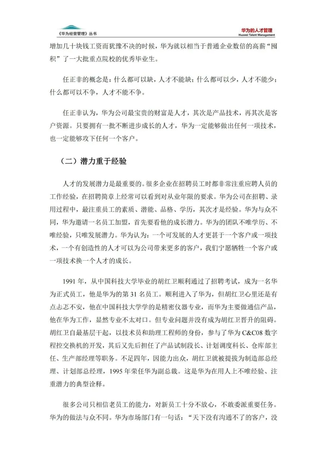 华为深知,在知识经济时代,人才是企业最宝贵的资源。华为创始人任正非多次强调:“人才不是企业的核心竞争力,对人才的有效管理才是企业的核心竞争力。”这一理念贯穿于华为人才管理的始终,成为华为人才战略的核心。