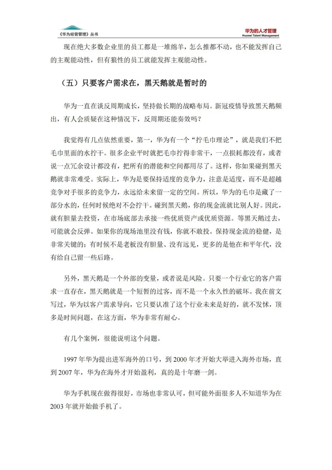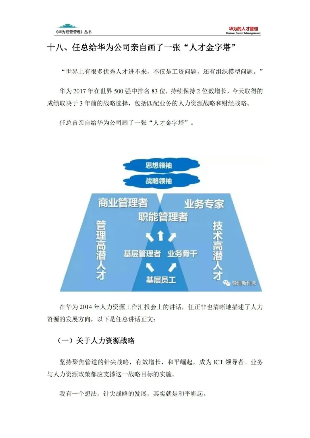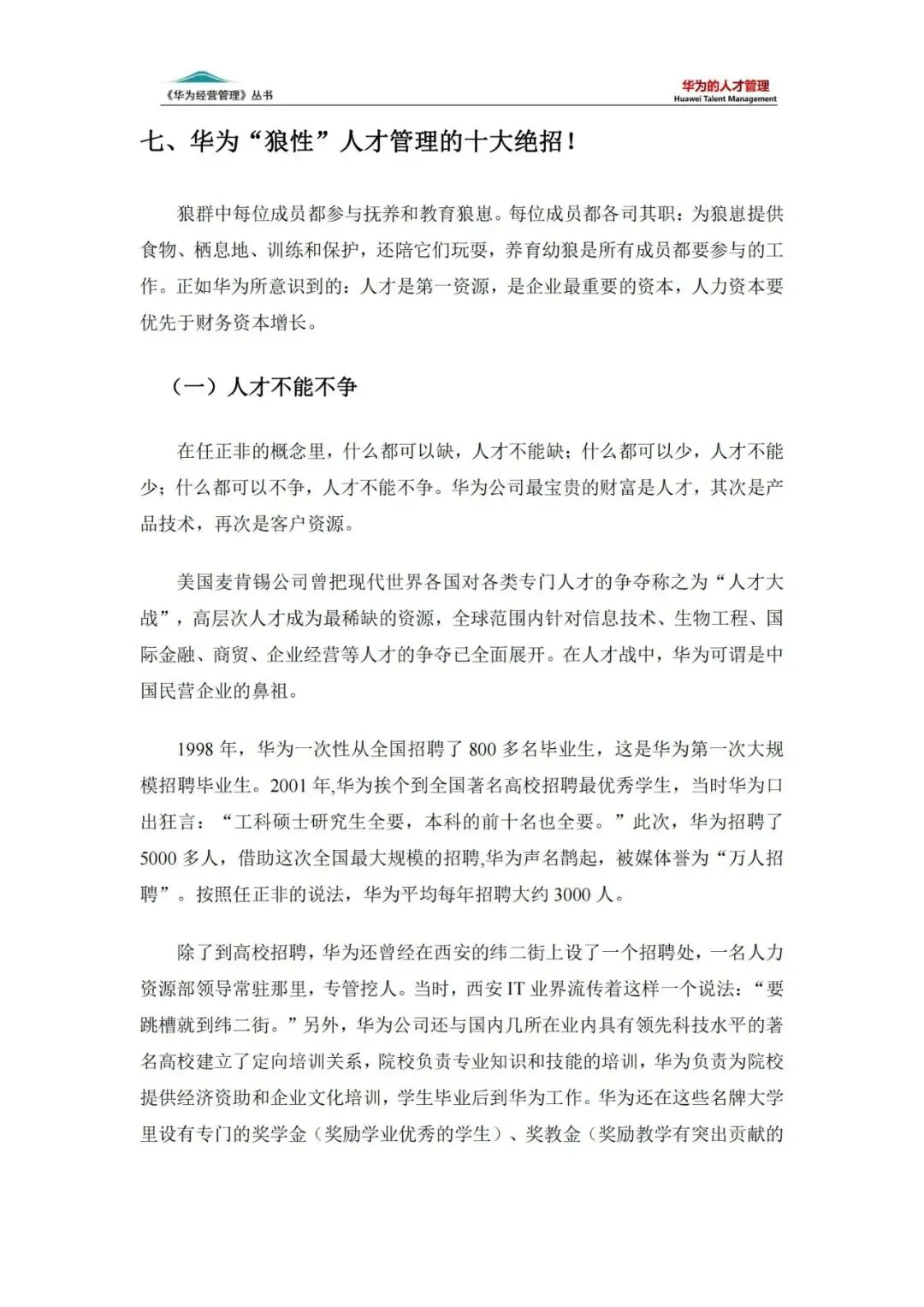在竞争激烈的全球市场中,华为能够脱颖而出,成为通信行业的领军企业,其背后离不开一套高效、科学的人才管理体系。《华为的人才管理》一书,深入剖析了华为在人才管理方面的独到之处,为我们揭示了华为持续增长的秘密武器。本文将从人才战略、选才机制、育才体系、激励机制及组织活力五大维度,全面解读华为人才管理的精髓。