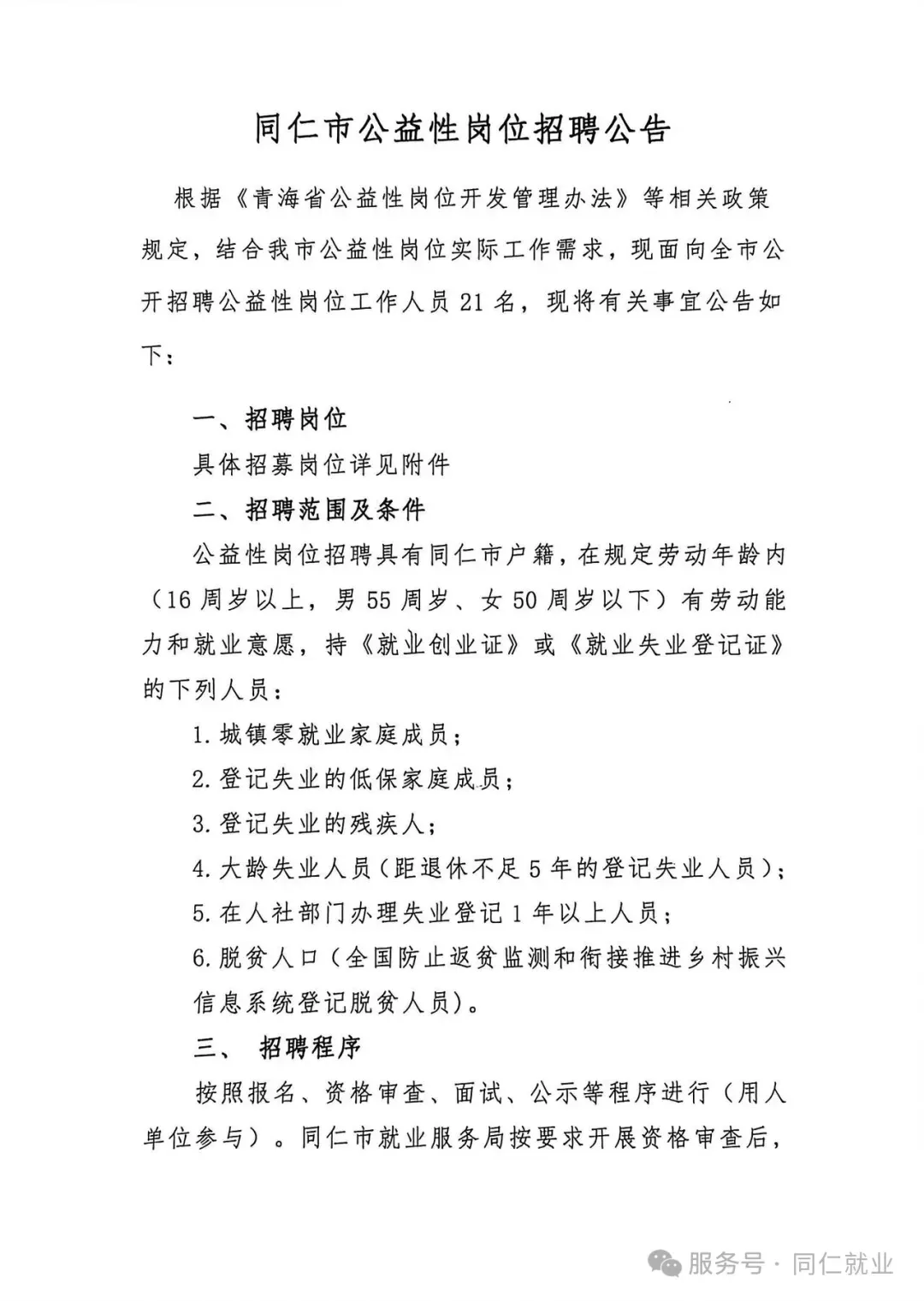来源:同仁市2026年1月公益性岗位招聘公告