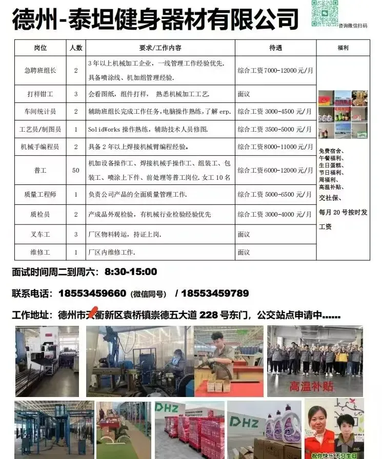3、车间统计1人,要求会电脑做表格,工资110元一天。