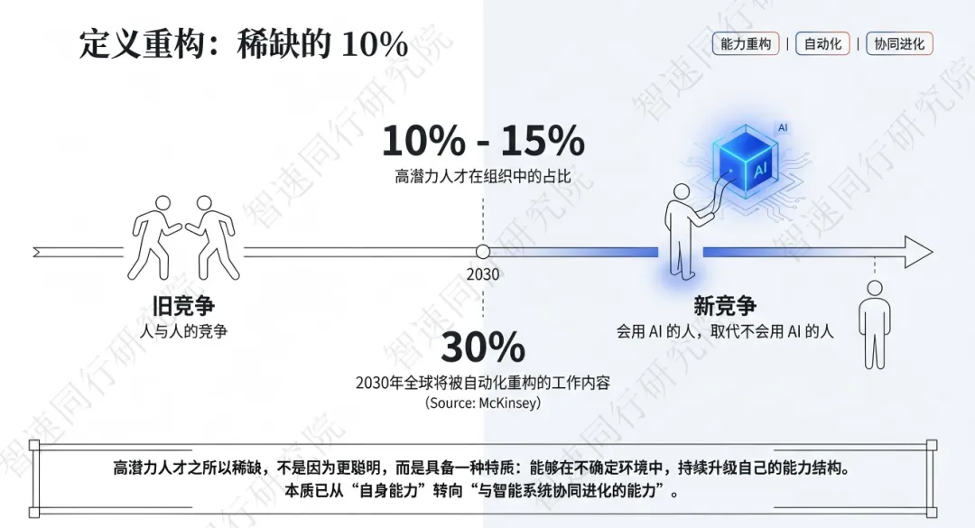 在这种背景下,高潜力人才的本质,正在从“自身的能力本身”转向是否具备与智能系统协同进化的能力。