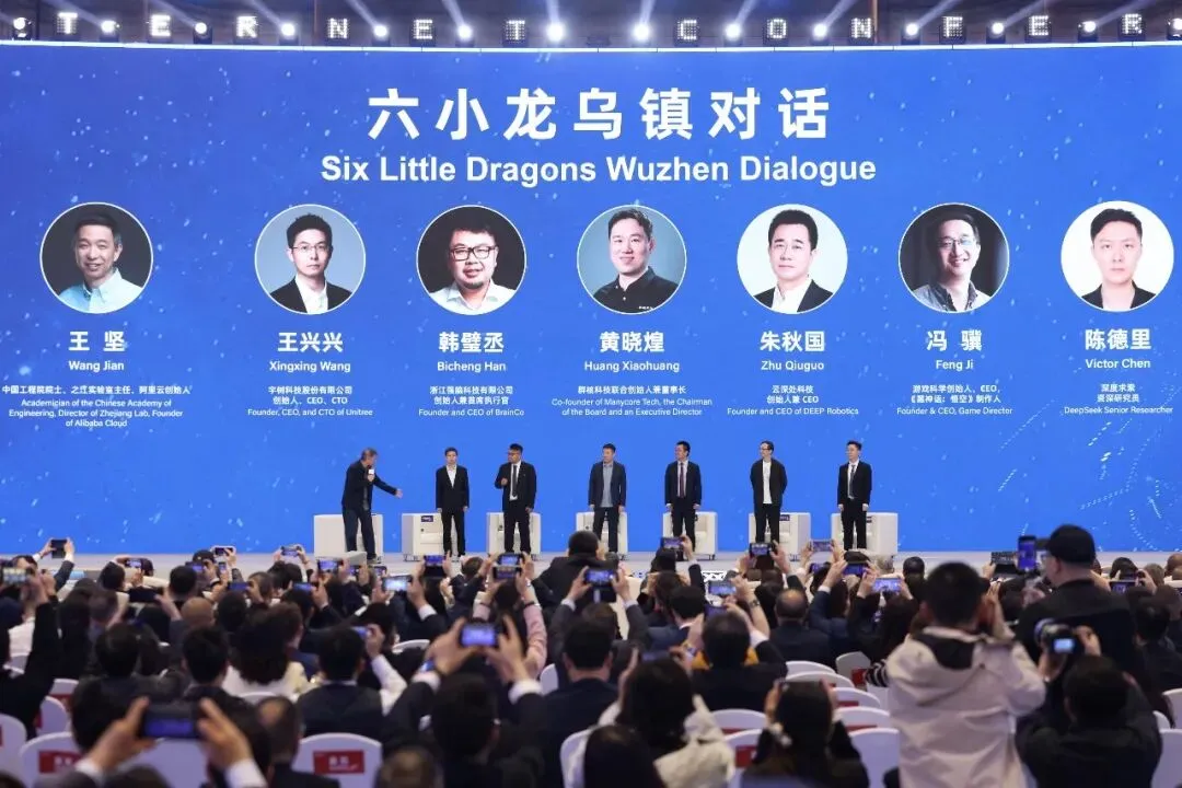 ▲2025年11月7日,2025年世界互联网大会乌镇峰会在浙江乌镇举行“六小龙乌镇对话”,前沿科技企业代表围绕全球人工智能技术创新发展等前沿趋势进行交流,探索通过跨界合作共同应对全球性议题 图/视觉中国