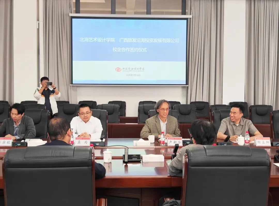 广西旅发沿海投资发展有限公司董事长廖达详细介绍了该公司在文旅、城建、康养三大领域的核心业务及北海项目布局规划。他表示,期望依托学校在艺术设计领域的专业优势资源,在项目规划设计、商业模式创新等领域开展深度合作,在企业项目规划设计环节提供专业技术支撑,同时该公司将为学校提供实习基地建设支持,助力学校实践教学开展。