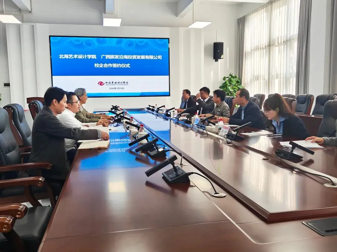 为深化校企合作、搭建产教融合桥梁,推动校地企协同发展,1月14日下午,我校与广西旅发沿海投资发展有限公司校企合作签约仪式顺利举行。校长卢新华,副校长陶立阳,校长助理、美术学院执行院长龚为,设计艺术学院院长李林平,影视动画学院副院长李宗毅与广西旅发沿海投资发展有限公司董事长廖达为首的企业代表齐聚一堂,围绕合作核心议题深入研讨、共话未来。