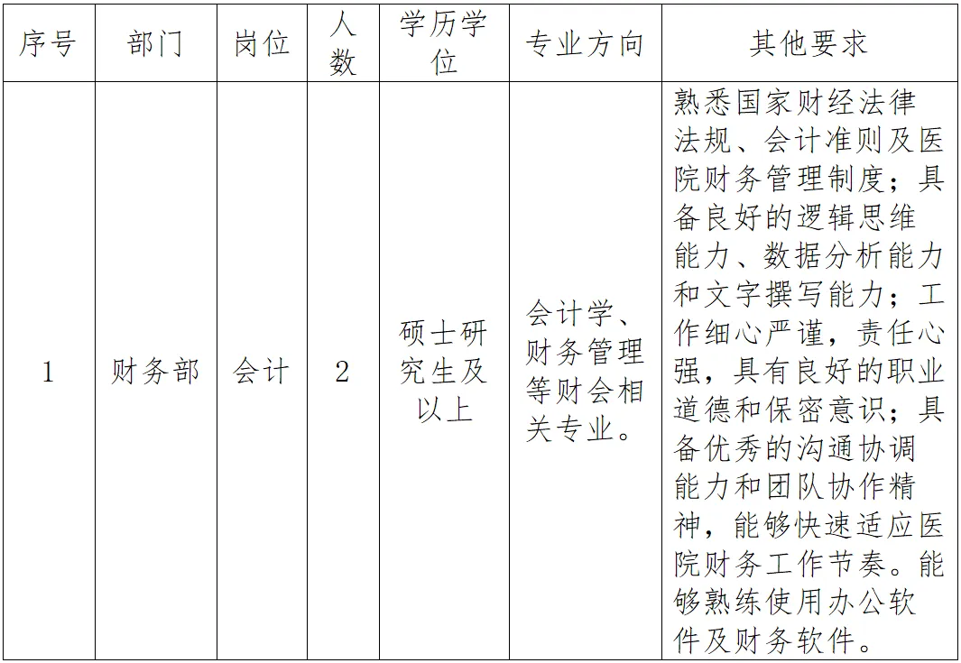 根据我院业务发展的工作需要,现计划招聘以下岗位,具体如下: