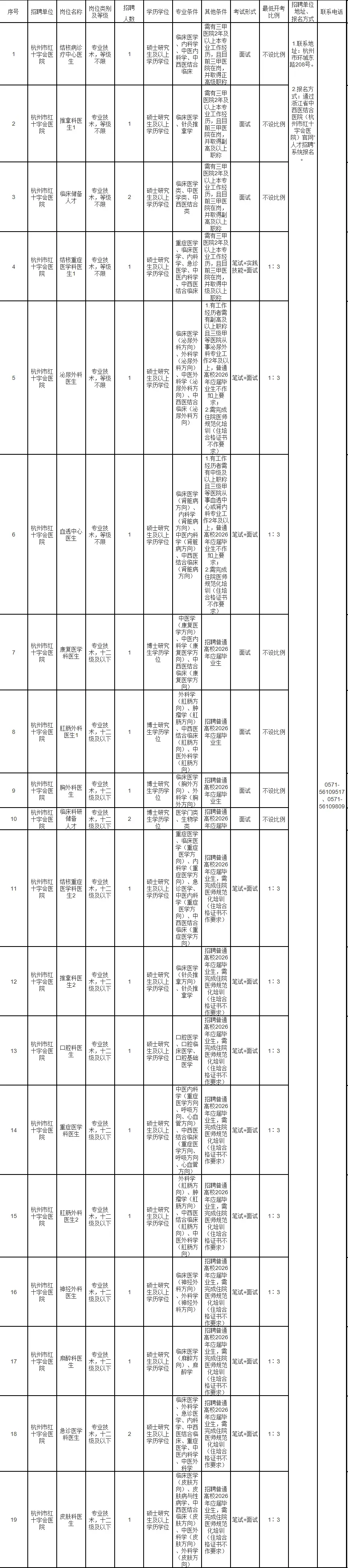 杭州市红十字会医院公开招聘高层次人才公告