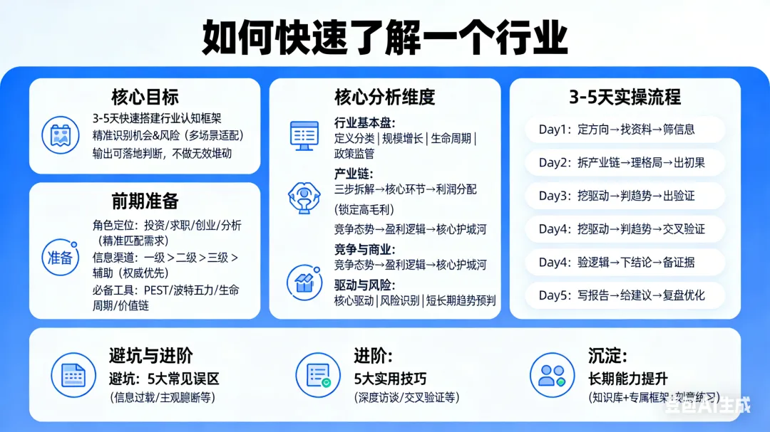 核心主旨:快速了解行业的本质,是建立“能帮你做决策的有效认知”,不是追求“啥都知道”