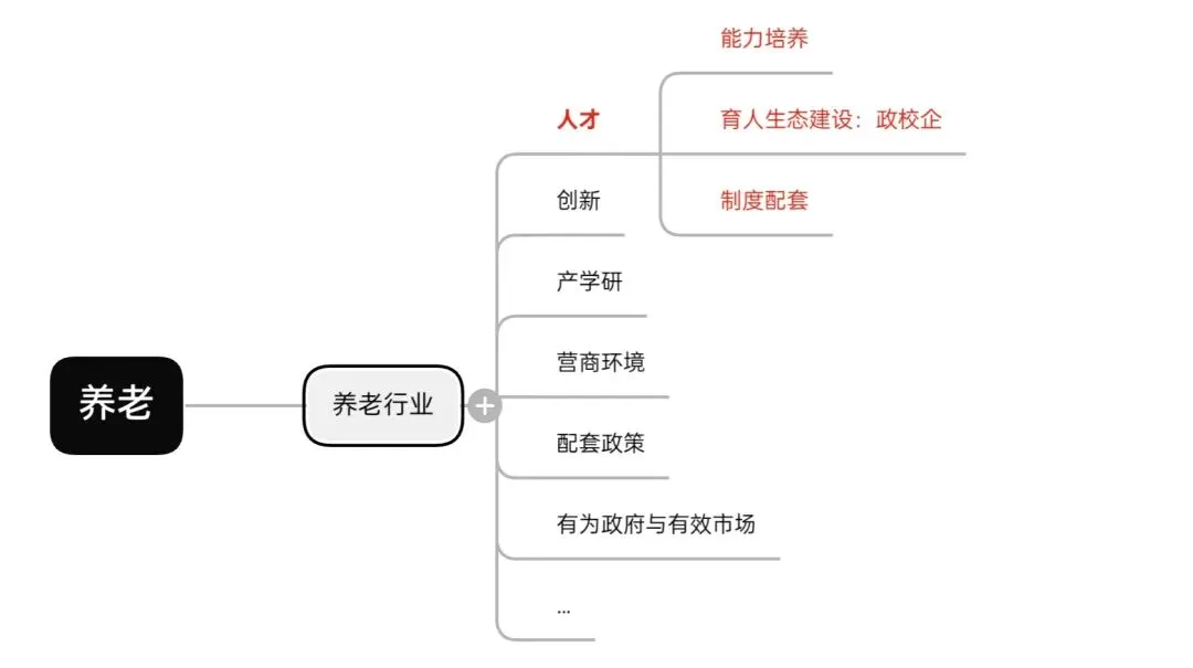 站在行业的角度,本文探讨的是养老行业,并从“人才”的角度展开论述。那么,抛开本文,发散一下自己的思维,可以想到哪些与养老行业有关的词语呢?