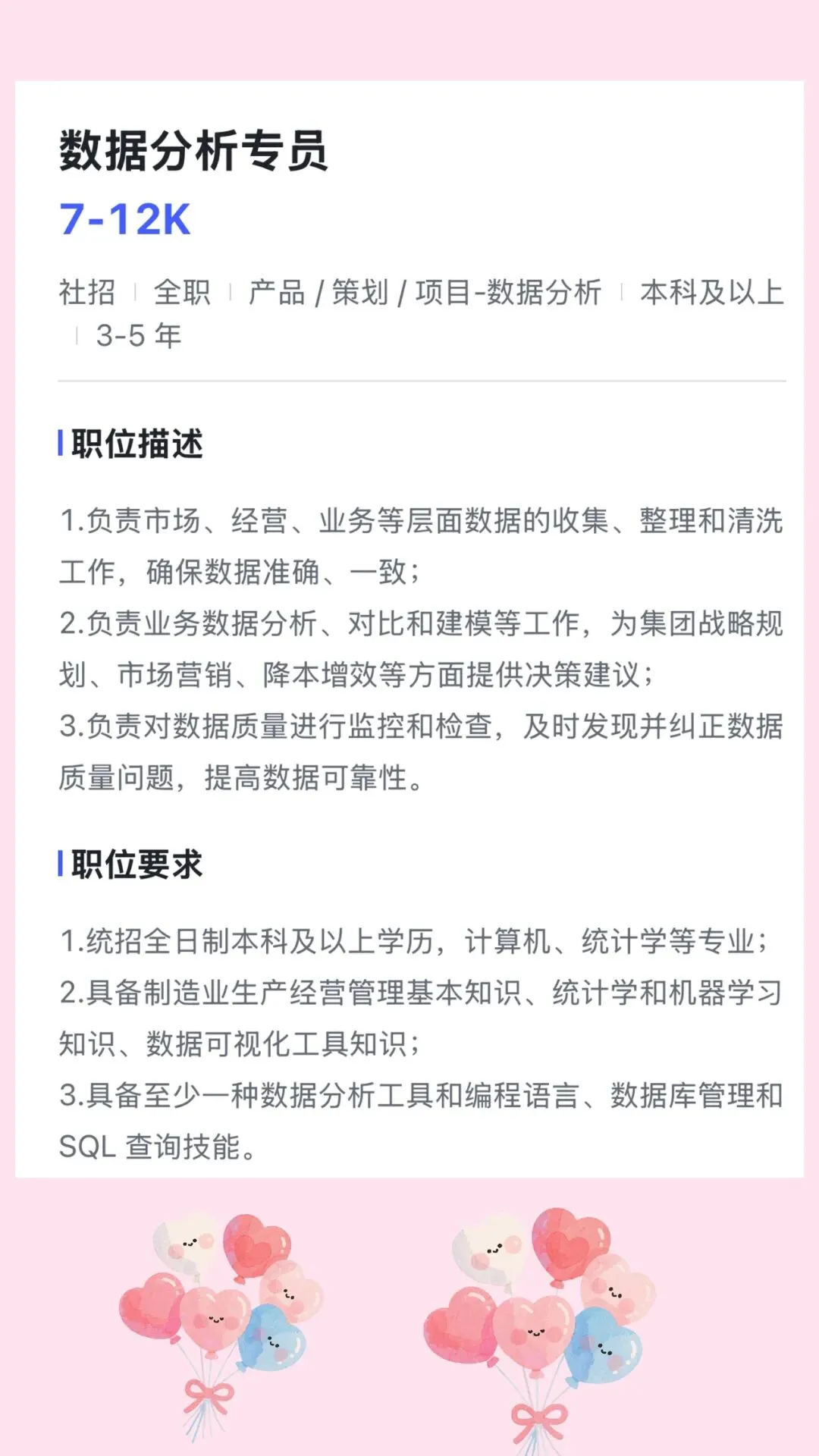 14. 数据分析专员 7 - 12K 本科及以上