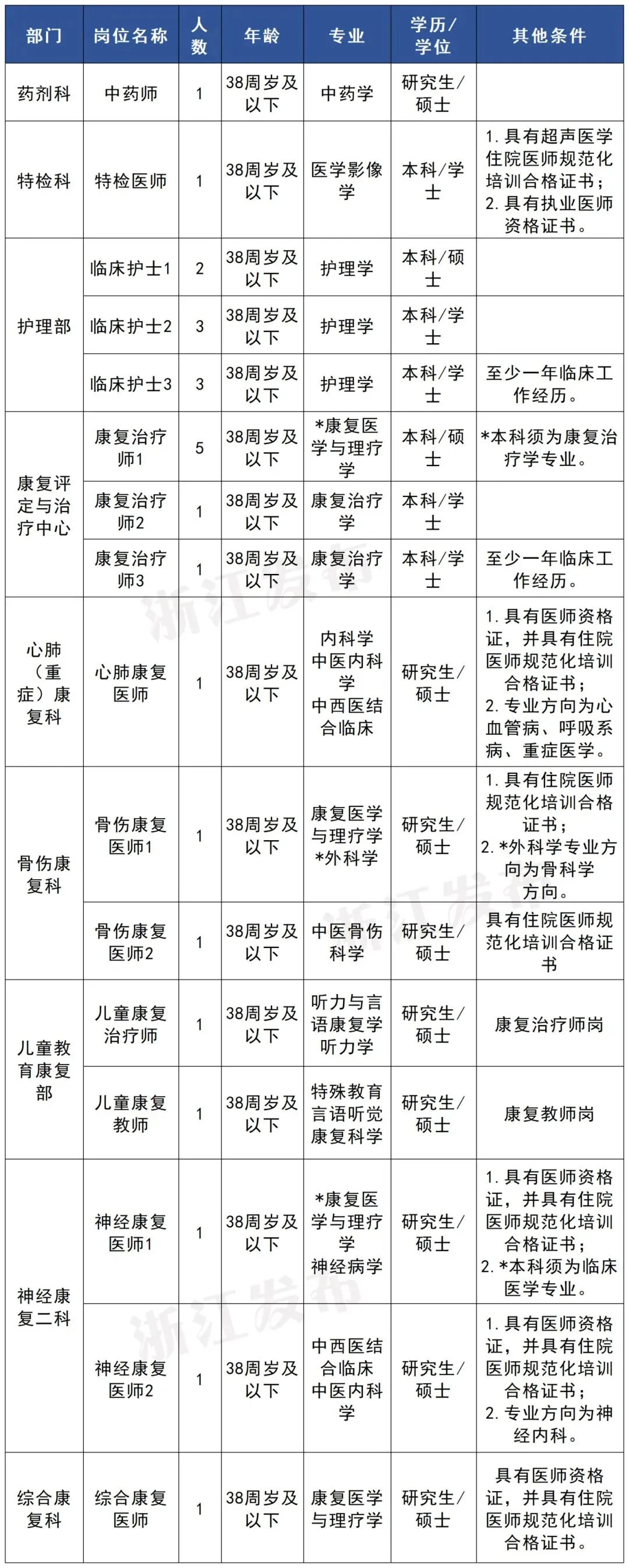 浙江康复医疗中心本次公开招聘16个岗位共25人,均为专业技术岗位。