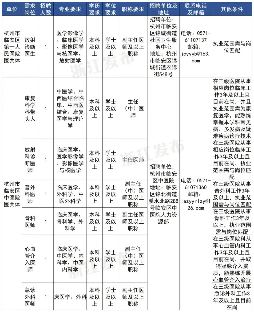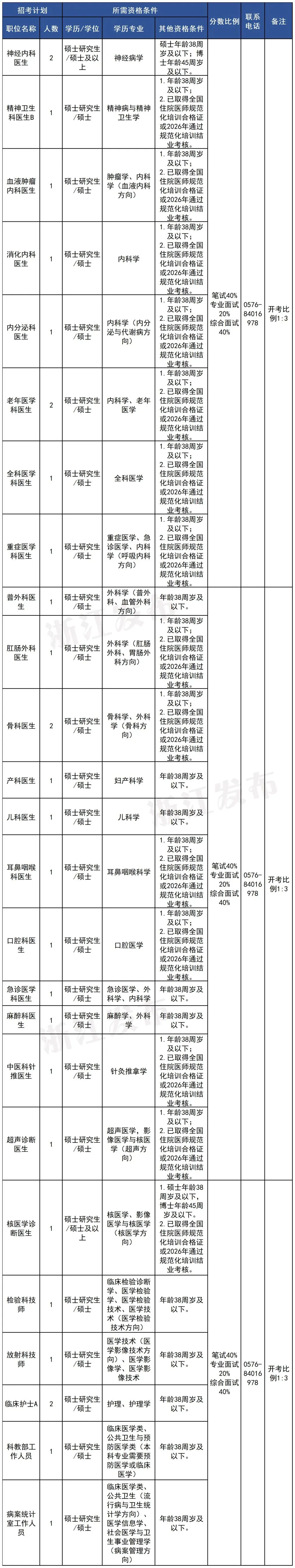 杭州市临安区卫健系统2026年决定面向社会公开招聘高层次、紧缺专业技术人才,由2家医疗卫生单位设置7个岗位,共招聘事业编制人员7名。