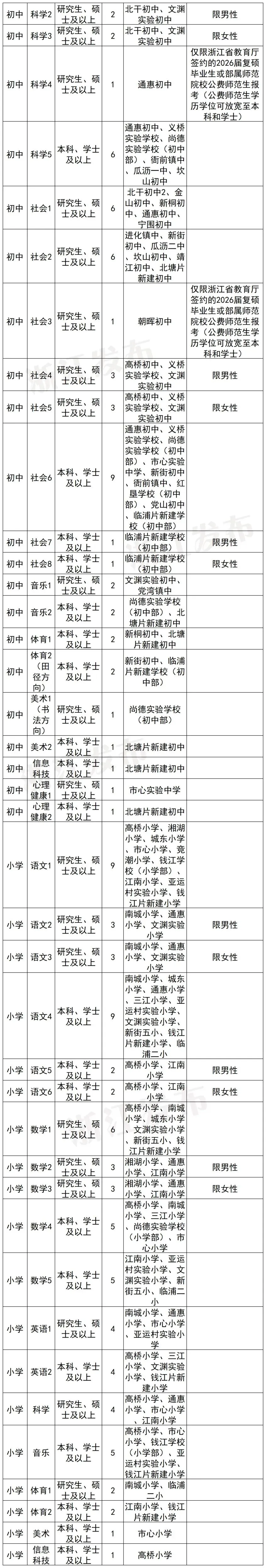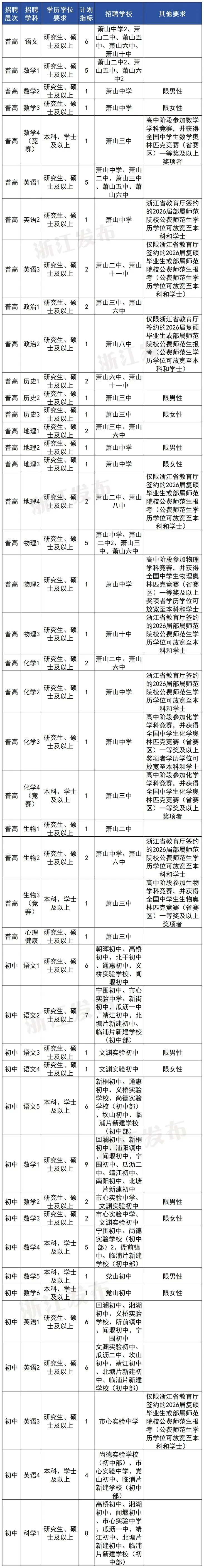 杭州市萧山区决定面向2026届高校毕业生,招聘中小学事业编制教师,招聘计划指标245名。