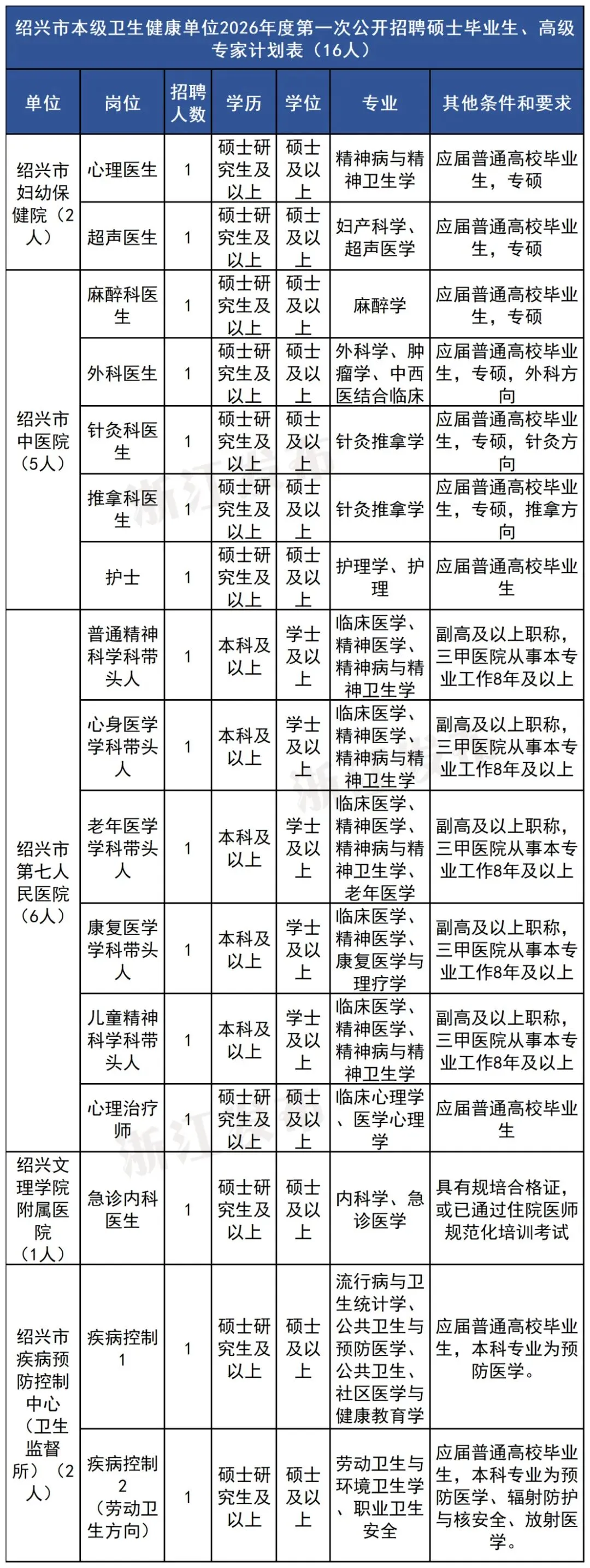 绍兴市第七人民医院组织人事科:0575-85397770