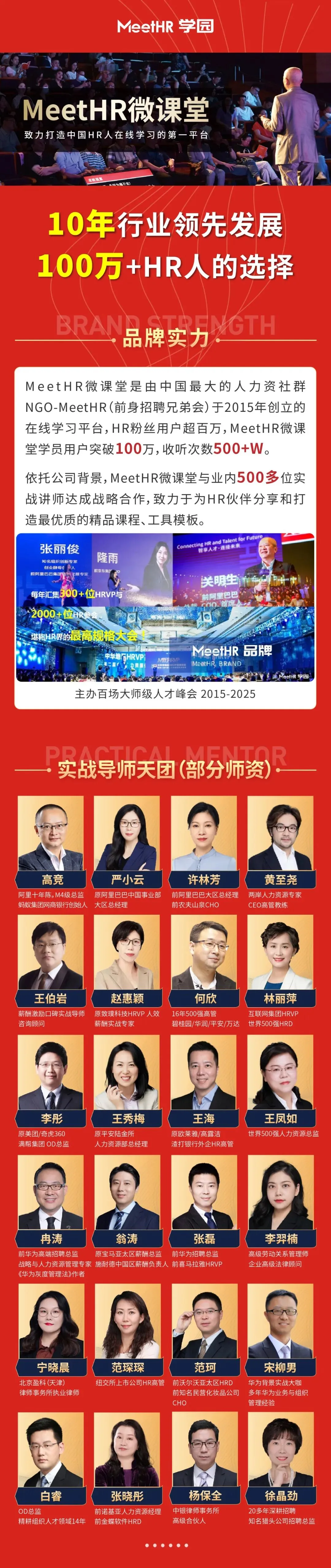 MeetHR微课堂联合300+位人力资源与管理领域实战导师,90%讲师为企业HRD/模块总监,授课实战性强、理论少,落地强。▼报名听课欢迎联系▼