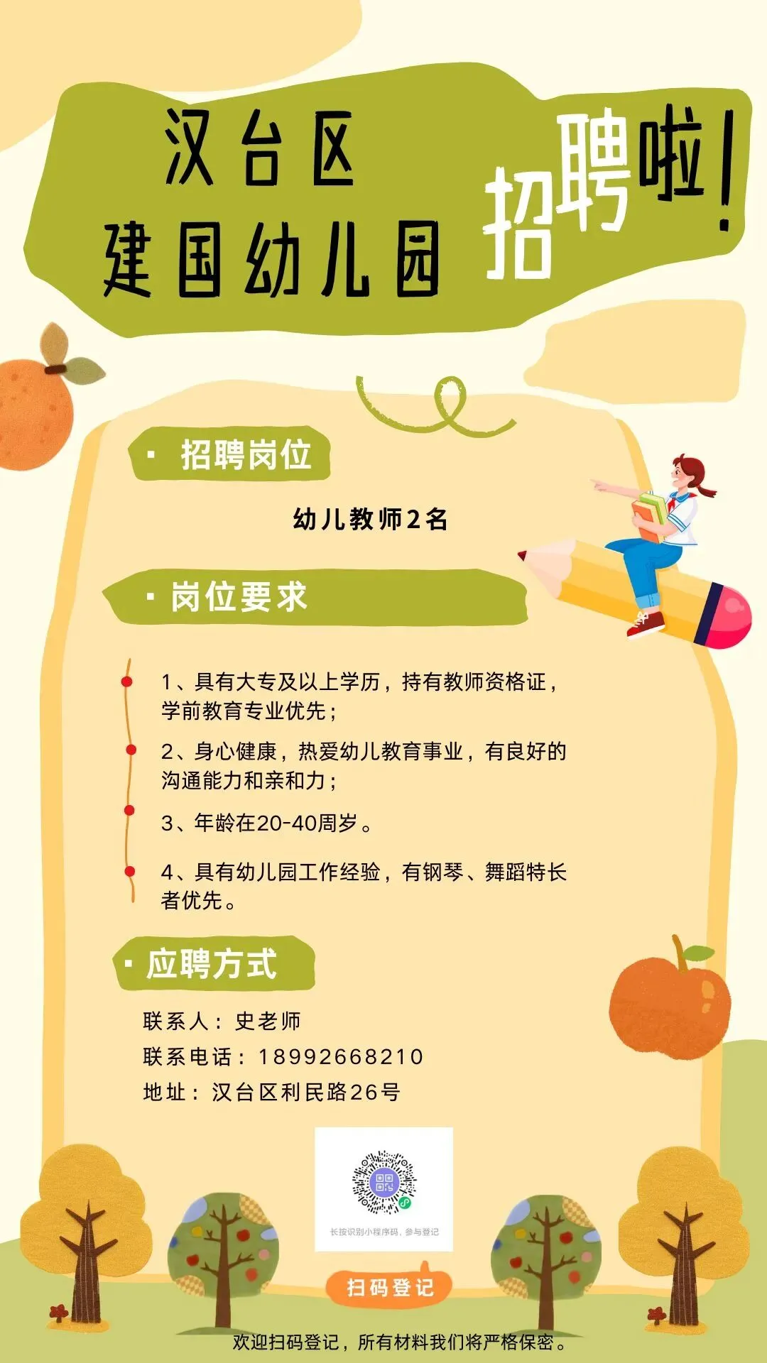 汉台区建国幼儿园招聘啦!