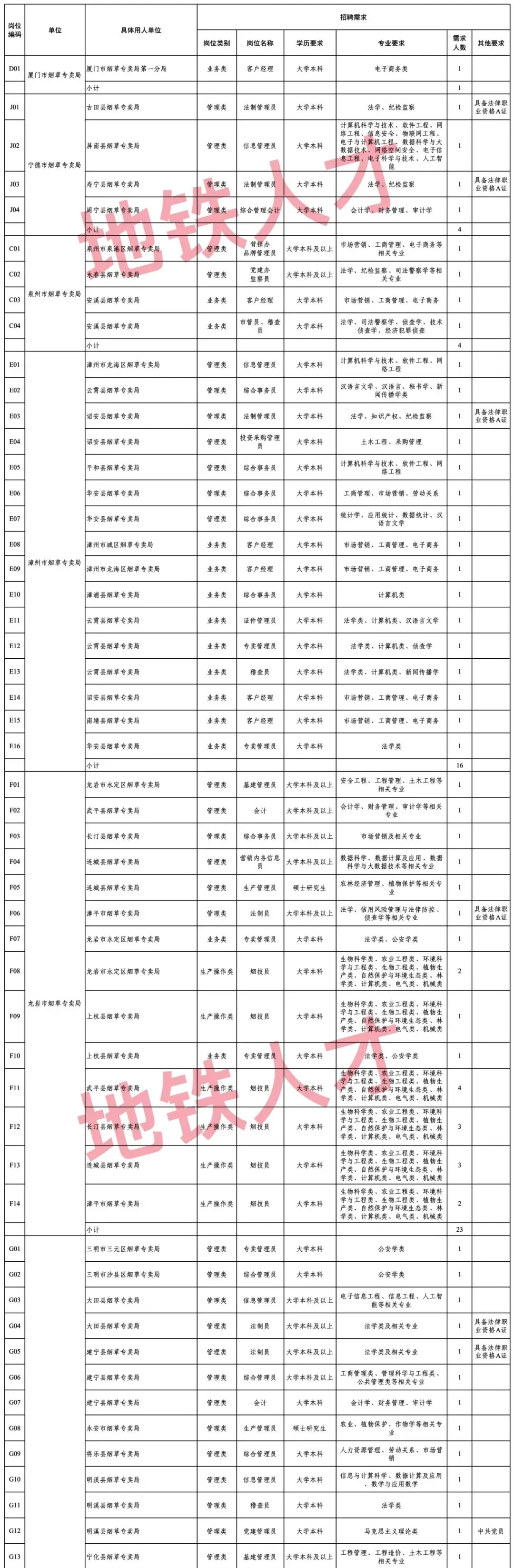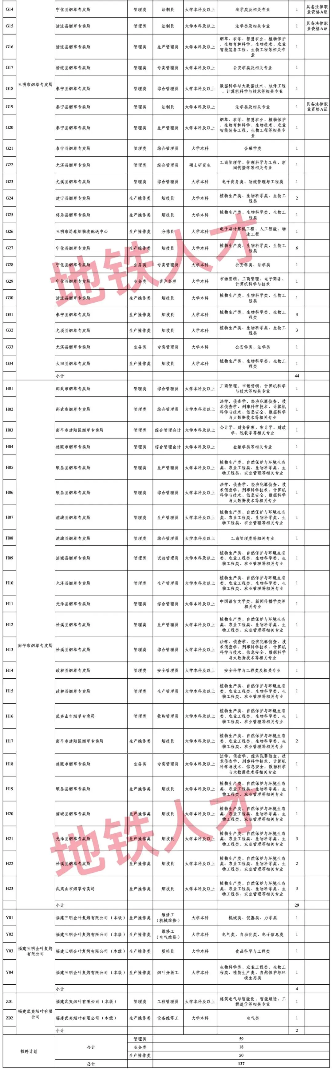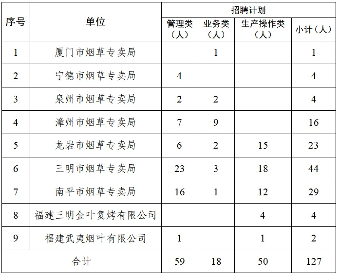 1、127人!福建省烟草专卖局(公司)2026年招聘公告(第二批)(1.26)