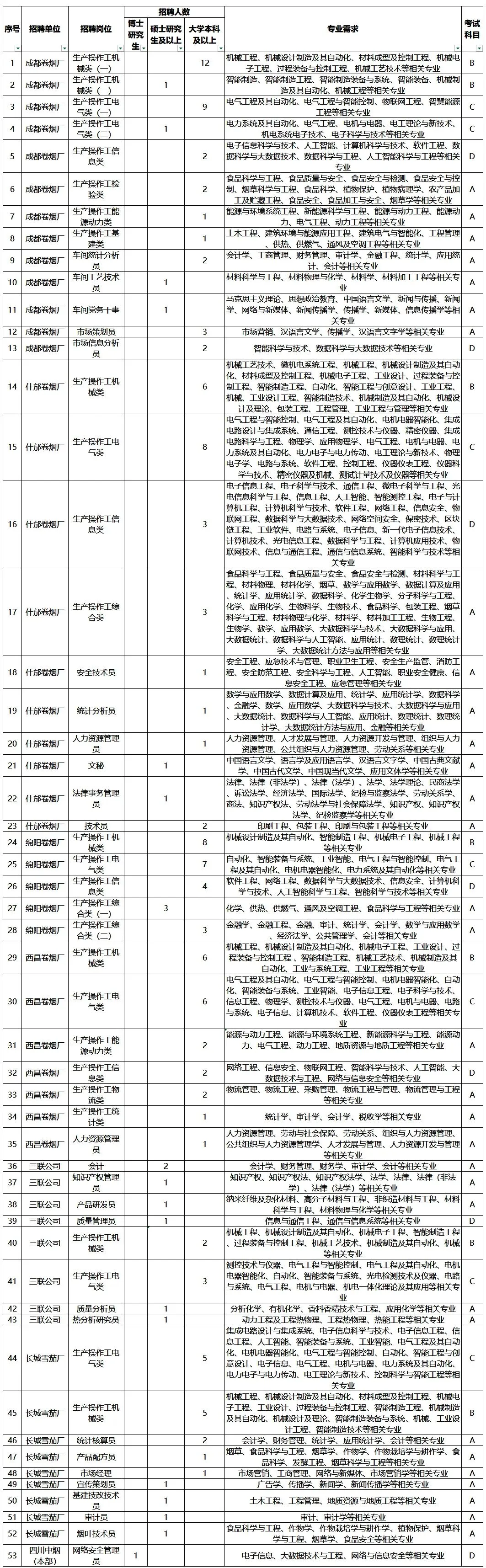 8、141人!四川中烟工业有限责任公司2026年度员工招聘公告(1.22)