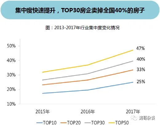 2016年TOP30房企市场占有率为30%,2017年已经提升至40%,涛哥预计今年将突破50%。