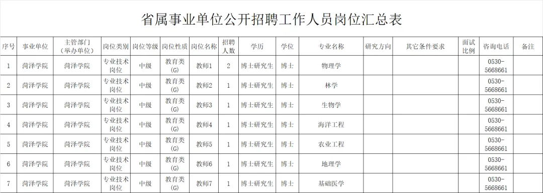根据《中共山东省委组织部山东省人力资源和社会保障厅关于印发2026年度省属事业单位公开招聘工作实施方案的通知》(鲁人社发〔2025〕12号)要求,结合工作需要,我校拟面向社会公开招聘专业技术岗位人员8人。具体岗位及条件详见《省属事业单位公开招聘工作人员岗位汇总表》(附件)。
