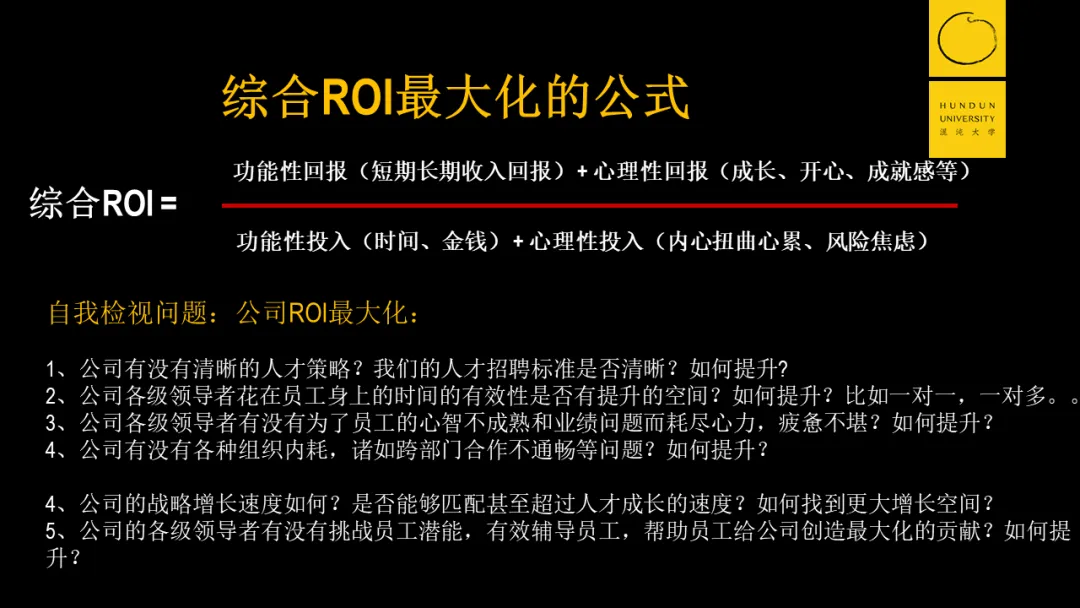 2015年,张一鸣曾经有这么一条简短的微博:Develop a company as a product。张一鸣认为,创业者在启动创业的时候,其实同时在做两个产品。一个是提供给用户的产品,另一个是提供给员工的产品,就是公司本身。而公司的CEO就是这两个产品的产品经理,他负责链接两端,一端是业务,一端是员工。有的人可能会有疑问,公司给员工发工资、发奖金,员工怎么可能是公司的客户?其实,在经济学原理下,“员工为公司贡献生产要素,公司向员工支付工资和奖金”,这件事情和“公司向客户提供产品和服务,客户向公司支付商品和服务费用”在本质上几乎是一样的,都是双方利益最大化下进行的等价交换。“利益最大化”是我们做一切决策的关键指标,这里我们引入经济学上的一个概念——ROI(Return on Investment)来帮助我们理解。ROI,一般翻译为“投资回报率”,指代我们从一项投资中可以获得的总经济回报。张一鸣曾经说过:很多企业把人当成企业的损耗成本,特别是有些CEO很节约,总想招一些便宜的人。这个人虽然很便宜,但是能给你带来的回报很少,或者说低于你付给他的工资,那么这个人给你带来的ROI就是负数。这个人虽然很贵,但是给你带来的回报更大,说不定这个人才是真正便宜的。对于员工来说也是一样,他为什么愿意加入你的公司,因为加入你的公司,个人投资回报率最大。而对于CEO来说,如何设计好“公司”这个产品,就是让公司和员工同时拥有最高的ROI,让彼此对投资回报率感到满意。那么公司和员工的ROI到底由哪些因素决定?我列出了以下这个公式。它的大小主要由4个元素来决定,分别是公式的分母端的功能性投入(投入的时间、金钱)加上心理性投入(内心疲惫、精神焦虑);分子端的功能性回报(长短期收入)加上心理性回报(开心、成就感、成长)。而如果要让ROI最大化,其实我们要做的只有两件事,降低分母,提高分子。第三,心情。和团队、领导能否愉快共事,通勤成本是否影响心情等等。比如HR建议给员工提供班车,张一鸣说不用,直接给员工每个月发1500的房租补贴,让员工在公司附近租房,节约交通成本。再比如我们知道现在很多公司都是文山会海,拉低了公司的运转效率。我们发现一般情况下,开会的人花了很长很长的时间准备了PPT,在开会时给他20分钟的时间他把PPT内容给大家解释一遍。这个时间利用率是非常非常低的。字节跳动里有一个专门研究提高会议效率问题的部门——飞阅会。飞阅会开会的第一步不是所有人讲PPT,而是把你准备好的材料提前发给大家,大家看一遍之后,通过飞书(字节内部沟通软件)直接插入各自的问题和建议。10分钟后,大家就开始插入的问题和建议开始讨论,有效提高了会议效率。一场会议并不是每个人都会发言,很多人会抱着电脑过来,一边听一边处理自己的事情。所以飞阅会也建立了一种机制,如果某个人只和会议中的某个议题有关,那么他就不需要来参加会议,讨论到这个环节的时候,把他连线进来就可以。字节跳动的企业文化里有一条,叫做打造“坦诚清晰”的企业文化,可以理解为“敢当面表达真实想法,反对向上管理,坦诚直接”。这里的“缺乏坦诚”,指的不仅是恶意欺诈,也包括不能真实地表达想法。换句话说,虽然你没说谎,但你也没有坦诚表达看法,这也是低效沟通的表现。对于这一点,我感触颇深。一年前我去字节跳动谈一个咨询合作的项目,负责接待的老师给我提了2点注意事项。第一,在我们公司同事之间沟通就直呼其名,切勿称呼什么什么总。第二,我们的会议室只订到了10点,多一分钟都不行,到了10点钟必须出去。果然到了9点59分的时候,外面有人敲门,请我们尽快结束会议。在外面等候的同事也直接进来开始会议,全程没有多余的客套感谢。在这样的工作文化中来工作,其实我们的心情是非常简单纯粹,而没有任何心理压力的。有些时候,对员工来说关键的事情,不仅仅是你发的工资高不高,也包括你对公司里面每个人的工作贡献有没有公正的评价,在方方面面的流程上做到公平合理。他说,通过对薪酬和表现的对比,我们发现薪酬经常会出现各种形式的溢价。比如新人溢价。这个人跳槽过来,那我们怎么着得在他原来的工资水平上做一定的涨幅。但偏高的工资,很可能对原有团队里面快速成长的人产生不公平的对比。怎么解决?张一鸣认为,公司要按照岗位级别定月薪。岗位级别代表着稳定的月薪,如果你有突出贡献,公司可以用奖金来体现。其次,让HR而非业务主管来定薪酬,HR在定薪酬时也用不参考这个人的历史薪酬。HR会根据岗位级别,综合人才市场上的供求关系,给到一个最终的offer。创业公司招人的时候,由于吸引力不够,常常会给到一些期权。但问题在于公司规模越大越大,期权池在越变越小,这个时候我们发现被稀释的期权,很难吸引到顶级的人才了。张一鸣在面试的时候也发现了这个问题,因为经常有优秀的候选人告诉他,今日头条非常好,但加入你们最好的时间已经过了。而早期拿到期权奖励的人,即使后面他的贡献比较少,但由于他的期权特别多,所以他也会拿到很多的回报。换句话说,员工得到回报的身份已经不是员工,而是投资人的身份了。怎么解决这个问题?张一鸣给出的方法很简单,对于早期的人,多发奖金,用高薪替代期权。张一鸣说,期权本质上来说只是一个金融工具,员工要的是财务回报。所以我们只要