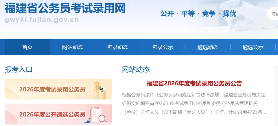2026年福建省公务员招考