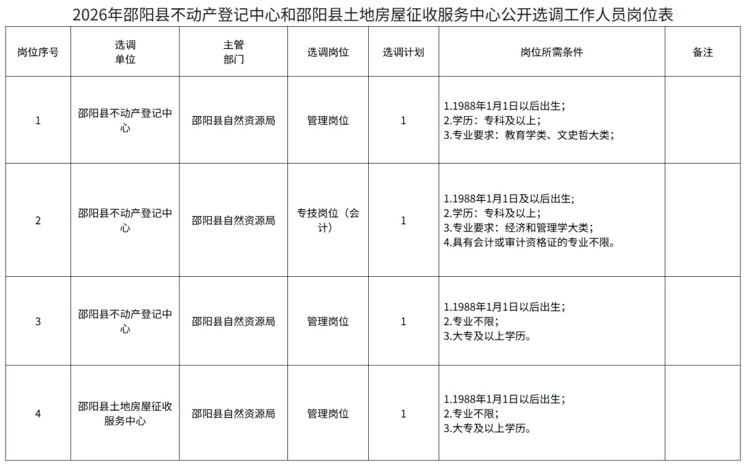 报名地点:邵阳县自然资源局政工股(自然资源局办公楼四楼407室)。