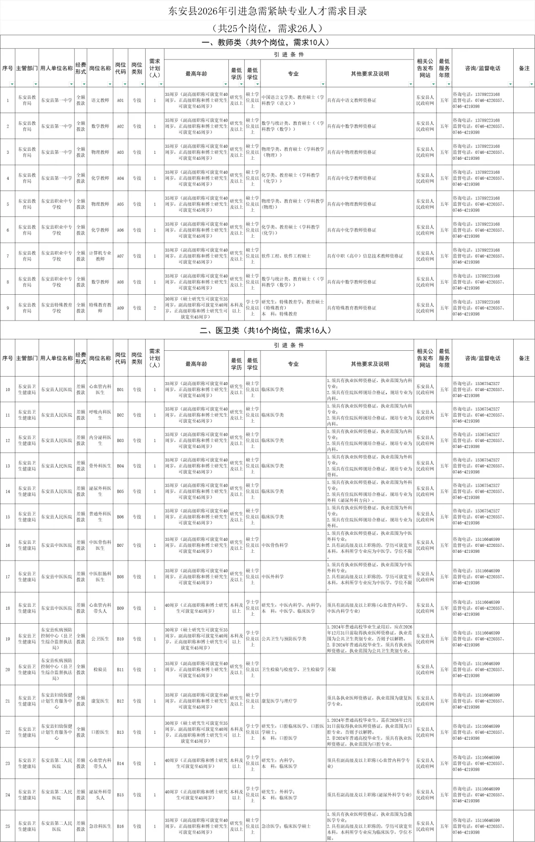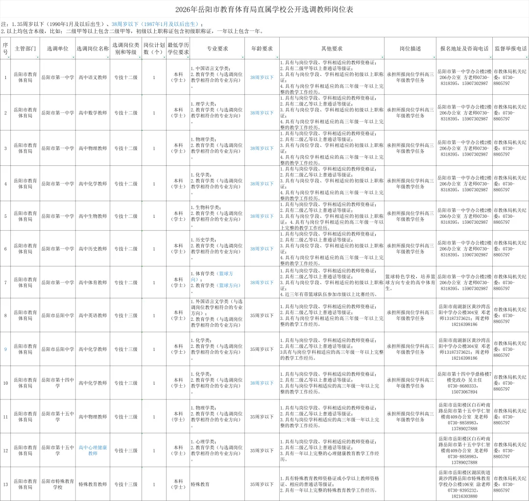 初中物理、初中化学、初中英语、初中体育各若干名。
