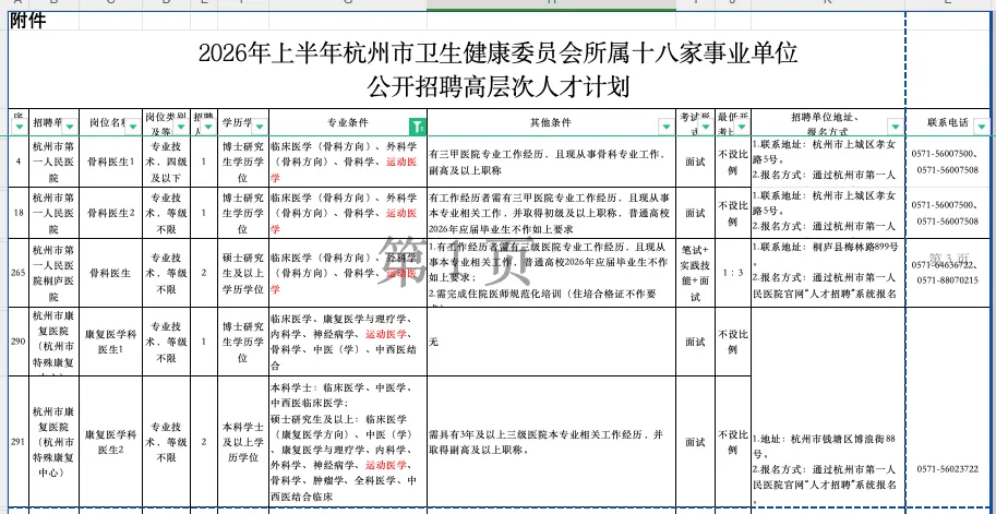 根据工作需要,杭州市卫生健康委员会所属杭州市第一人民医院、杭州市第三人民医院等18家事业单位决定面向社会公开招聘高层次人才514名。按照《中共中央组织部 人力资源社会保障部关于进一步做好事业单位公开招聘工作的通知》(人社部发〔2024〕57号)和《关于进一步做好浙江省事业单位公开招聘工作的通知》(浙人社发〔2024〕72号)等文件规定,现将有关事项公告如下: