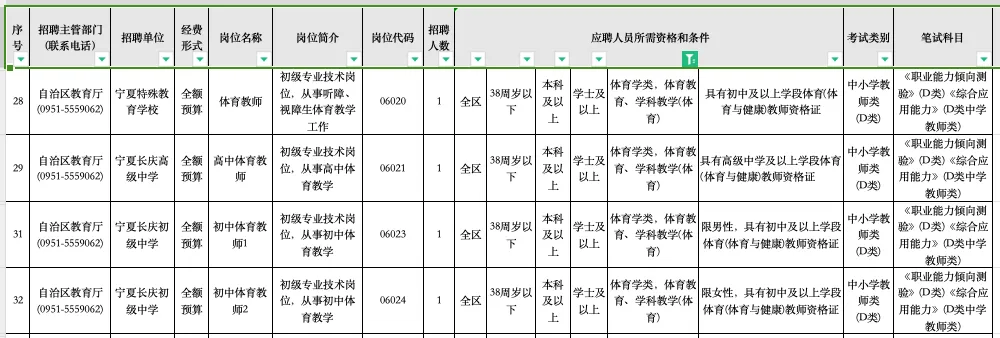 政策咨询电话:0951-12333(区内直接拨打12333)、招聘单位及主管部门咨询电话详见附件3