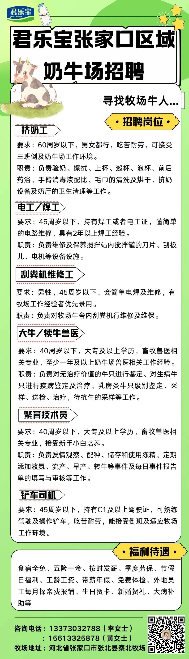 马家店招聘以下岗位