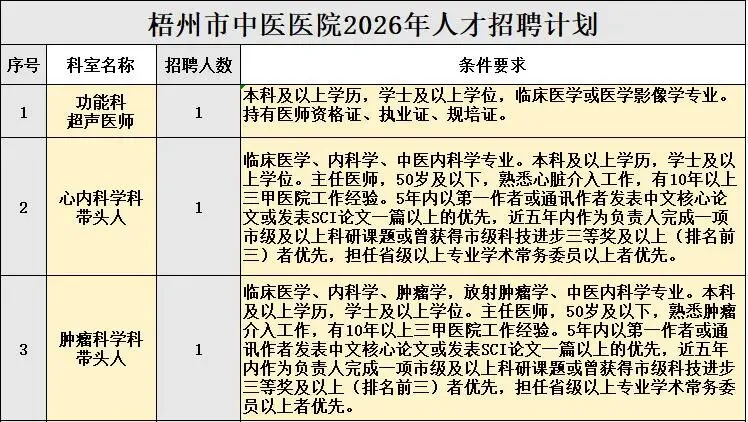 梧州市中医医院 2026年人才招聘公告