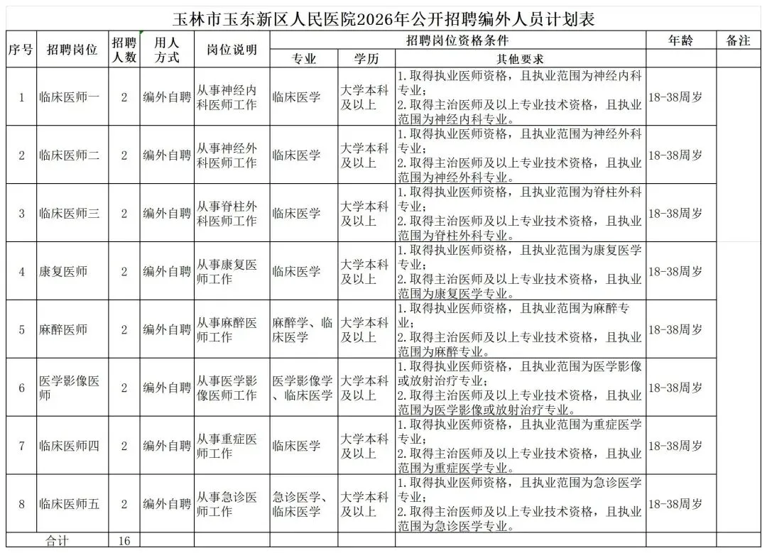 玉林市玉东新区人民医院公开招聘医师16人!