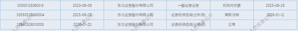 近日,证券从业系统显示,王浩然,1月12日从东北证券离职,1月20日加入东方证券。王浩然,东北证券分析师,曾调研过沃尔核材,奥比中光、海陆重工等,曾与电子首席李玖合写过研报。