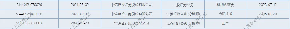 >中信建投一分析师跳槽华源证券